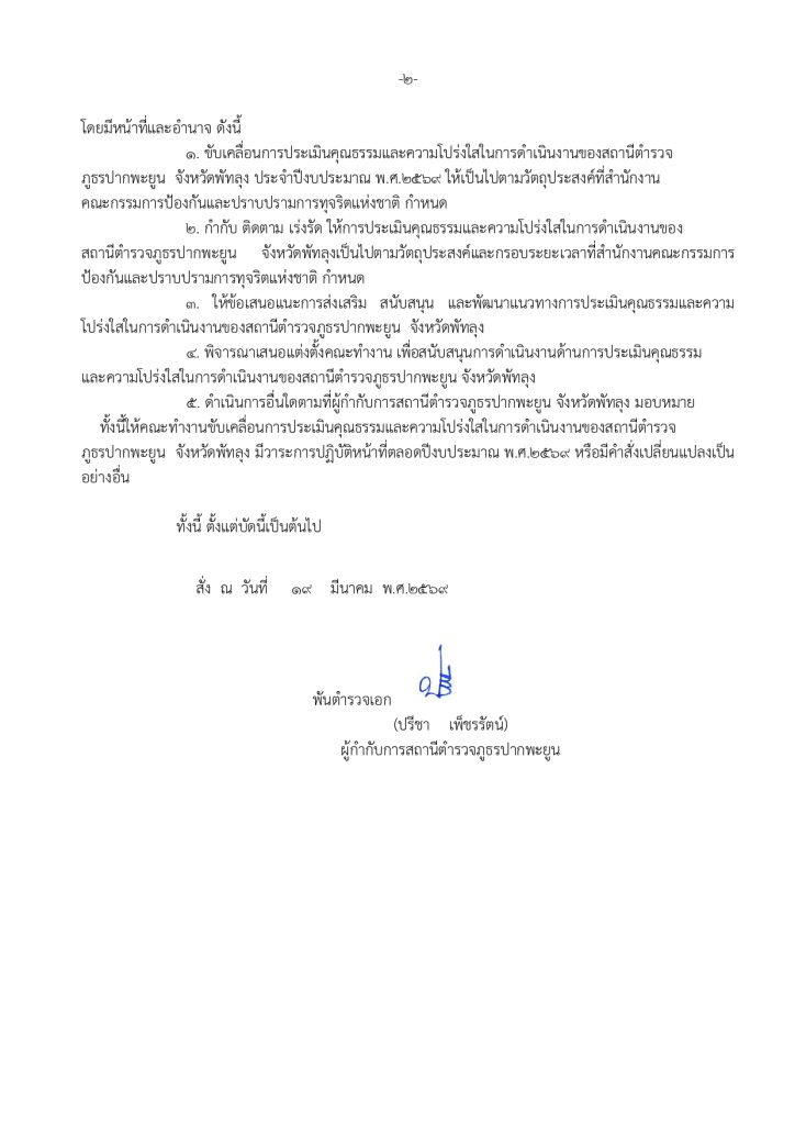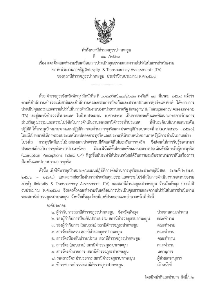 เรียน..ผู้บังคับบัญชา ภ.จว.พัทลุง/ภ9 สภ.ปากพะยูน วันที่ 2 เม.ย.69 เวลา 10.00 น. ภายใต้สั่งการของ พ.ต