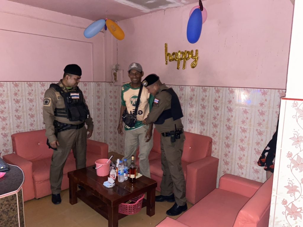 ตรวจสถานบริการ 20 ตุลาคม 2567 โดย admin / ข่าวกิจกรรม,ข่าวประชาสัมพันธ์,งานป้องกันปราบปราม สภ.ปากพะยูน เมื่อ 20 ต.ค.2567 เวลา 23.00 น. ภายใต้การอำนวยการของ พ.ต.อ.ทวีศักดิ์ ขำผุด ผกก.สภ.ปากพะยูน ,พ.ต.ท.สมยา คงวงค์ รอง ผกก.ป.ฯ ควบคุมการปฎิบัติโดย พ.ต.ต.ไพบูลย์ คำคง สวป.ฯ สั่งการให้ ร.ต.ต.ไพรัช เจริญวัฒนะทรัพย์ รอง สว.(ป.)ฯ/ร้อยเวร 2-0 พร้อมสายตรวจรถยนต์, ตรวจสถานบันเทิง ในพื้นที่รับผิดชอบ เพื่อป้องกัน ปราบปราม การขายประเเวณี คนหลบหนีเข้าเมือง Facebook iconFacebookTwitter iconTwitterLINE iconLine