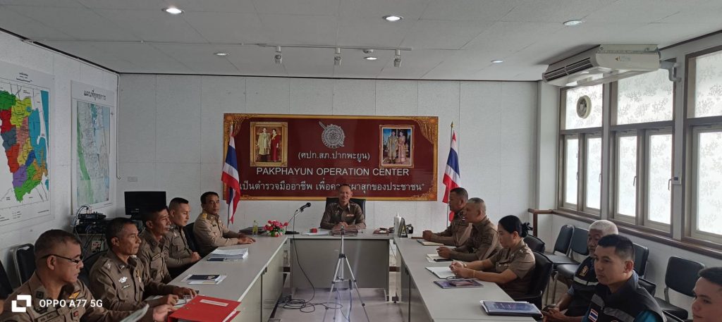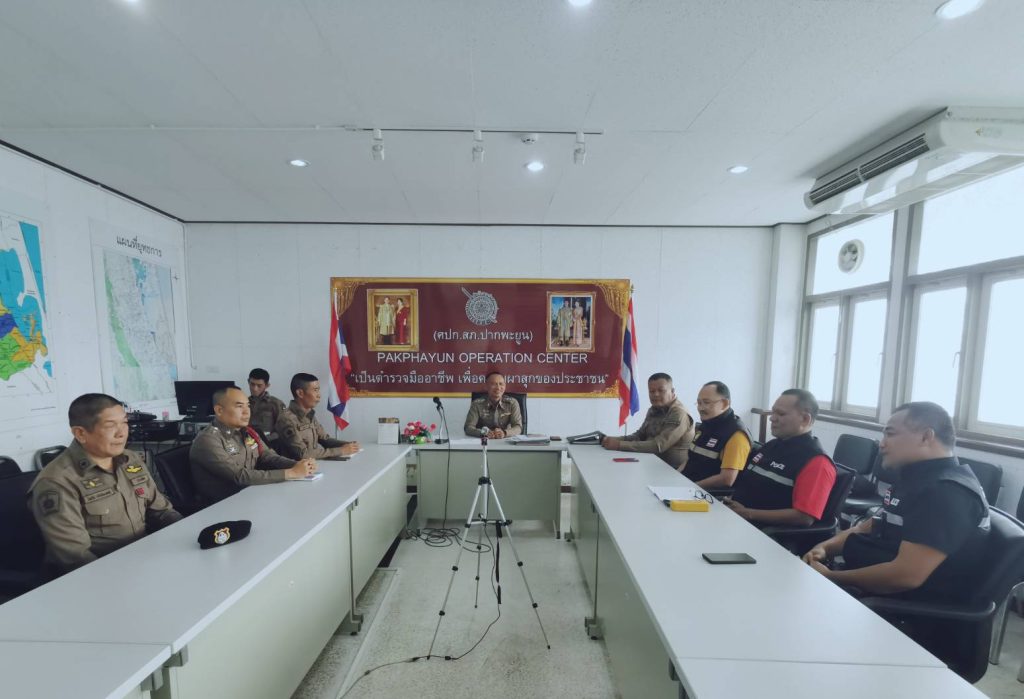 วันที่  31  ธ.ค.67     เวลา  10.20  น.   พ.ต.อ.ทวีศักดิ์​ ขำผุด​ ผกก.สภ.ปากพะยูน  พร้อมด้วย​ พ.ต.ท.สมยา​ คง​วงค์​ รอง​ ผกก.ป.ฯ, พ.ต.ท.ศราวุธ​ พ้น​ภัย​ สว.สส.ฯ, พ.ต.ต.ไพบูลย์​ คำ​คง​ สวป.ฯ​ และ ร.ต.อ.สุพัฒน์​ เพชรรั​กษ์​ รอง​สง.สส.ฯ/หน.ชุดเคลื่อนที่​เร็ว   ร.ต.อ.สำราญ​ แก้วขาว​ รอง.สว.สส.ฯ, ร้อยเวร​ 40     ร.ต.อ.​อาคม​ ปานจันทร์​ รอง​ สว.สอบสวน​ฯ/ร้อยเวร​ 30   ร.ต.ต.ไพรัช​ เจริญ​วัฒนทรัพย์​ รอง​ สว.(ป.)​ฯ/ร้อยเวร​ ​20   ประชุม​ชี้แจง เพื่อกำชับการปฏิบัติ​ตามข้อสั่งการและนโยบาย​ของ​ผู้บังคับ​บัญชา​ และติดตาม​สถานการณ์​ ในการออกตรวจพื้นที่ดูแลความปลอดภัยประชาชน​ ในการบังคับใช้​กฎหมาย​ การป้องกัน​เหตุ​และอาชญากรรม​ในพื้นที่, รักษาความเรียบ​ร้อย​บริเวณ​ที่ตั้ง​ ช่วงคืนส่งท้ายปีเก่า​ ต้อนรับปีใหม่​ (Coutdown)​ ประจำ​ปี 2568   ณ.​ห้องประชุม​ ศปก.สภ.ปากพะยูน​
