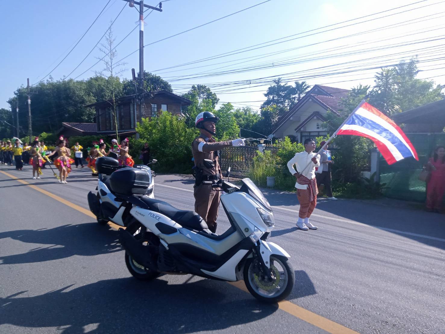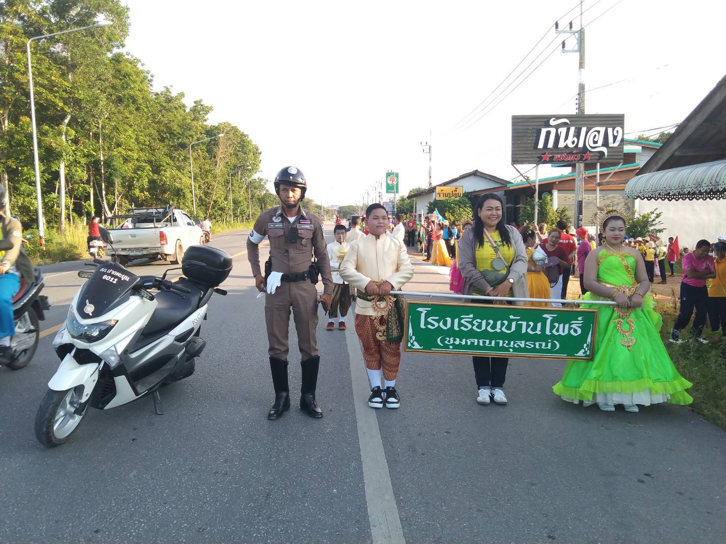 อำนวยความสะดวกด้านการจราจร รถนำขบวนพาเหรดกิจกรรมแข่งขันกีฬาสีภายใน (BANPHO GAMEครั้งที่ 2 ) โรงเรียนบ้านโพธิ์ (ชุมคณานุสรณ์)