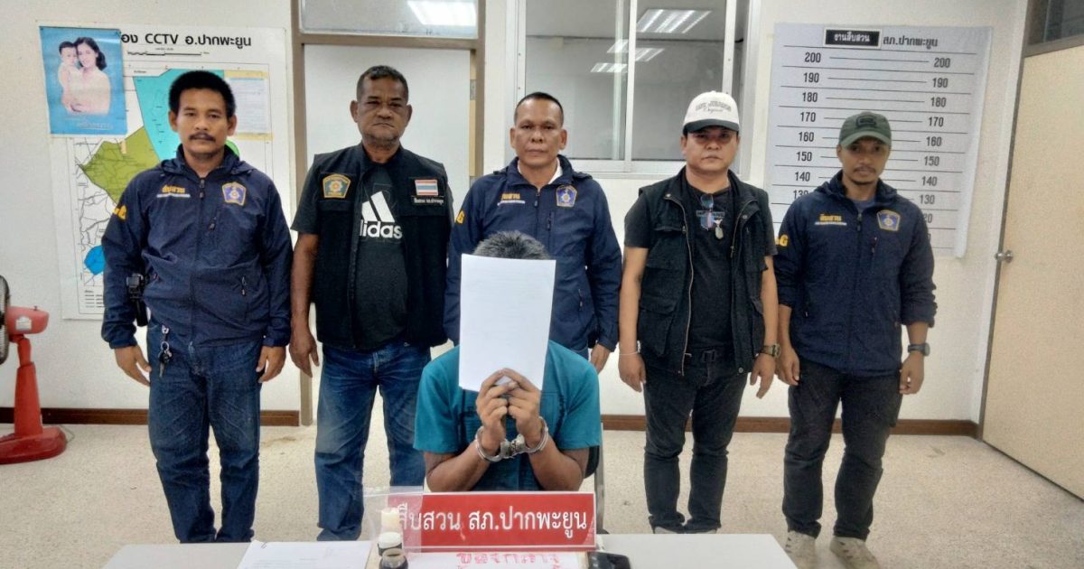 ตรวจค้น/จับ กุม มกราคม 16, 2569 โดย admin / ข่าวกิจกรรม,งานสืบสวน ภายใต้การอำนวยการของ วันที่ 16 ม.ค.2569 เวลา 06.00 น. ภายใต้การอำนวยการ พ.ต.อ.ปรีชา เพ็ชรรัตน์ ผกก.สภ.ปากพะยูน พ.ต.ท.มนตรี อนันต์ รอง ผกก.ป.ฯ สั่งการให้เจ้าหน้าที่ตำรวจชุดสืบสวน สภ.ปากพะยูน นำโดย ร.ต.อ.สุพัฒน์ เพ็ชรรักษ์ รองสว.สส.ฯ พร้อมกำลัง จับกุมผู้ต้องหา 1 ราย พร้อมด้วยของกลาง ยาเสพติดให้โทษประเภท ๑ (ยาบ้า) โดยกล่าวหาว่า มียาเสพติดให้โทษประเภท ๑ (เมทแอมเฟตามีน)ไว้ในครอบครองโดยไม่ได้รับอนุญาต Facebook iconFacebookTwitter iconTwitterLINE iconLine