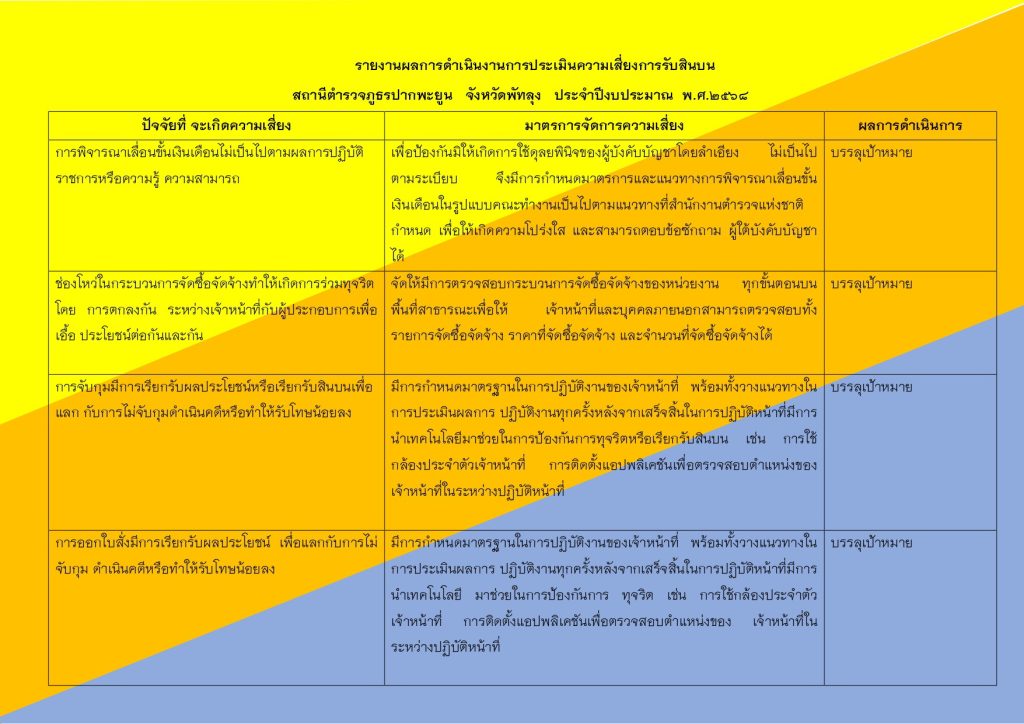 Home » O21 การรายงานผลการดำเนินการเพื่อจัดการความเสี่ยงต่อการรับสินบน