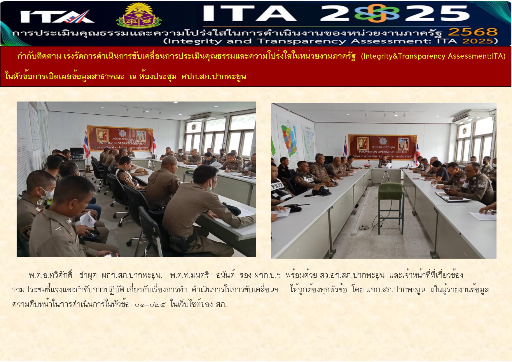 Home » O25 การรายงานผลการดำเนินการตามมาตรการยกระดับคุณธรรมและความโปร่งใสภายในหน่วยงาน